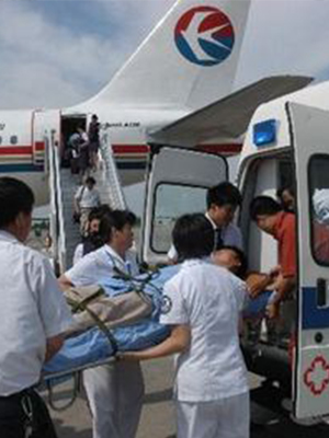 一.巴马正规救护车长途护送告诉您Heimlich手法(又称腹部手拳冲击法)1.成人方法(清醒病人):(1)救援人员站在病人身后,用手臂环绕病人的腰部;(2)抢救者一手握拳,将拇指侧方放在患者胸廊下和脐上腹部;(3)另一只手紧握拳头,迅速向上重复冲击,直至异物排除。2.婴儿方法:让病人平躺在坚硬的地面或床板上,面部向上,救援人员跪着或站在脚边。或救援人员坐着,让孩子骑在大腿上,背靠救援人员,用中指或
